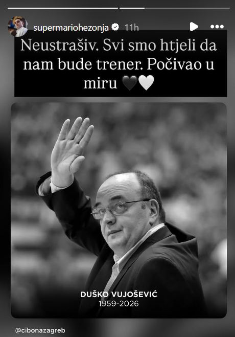 Čitav košarkaški svet se već četvrti dan oprašta od legendarnog trenera Duška Vujoševića, koji je neverovatnom posevećenošću i angažovanošću pomerio granice igre pod obučima, a na red su došle i reči asa Real Madrida Marija Hezonje, koji je podelio objavu Cibone i napisao emotivan komentar.