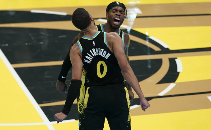 Tajriz Halibarton je prvi tripl-dabl u karijeri sačuvao za specijalnu priliku, prvi plej-in turnir. Indijana je noćas iznenadila Boston i ide u Vegas. Sjajni bek Pejsersa je ubacio 26 poena, imao 13 asistencija i 10 skokova. On je prelomio sa četiri poena stotinak sekundi pre kraja. Sedam Pejsersa bili su dvocifreni, na drugoj strani Tejtum 32 poena i 12 skokova. Seltiksi su bili bez Porzingisa, imali su prednost na poluvremenu, ali se ona istopila u trećem periodu.