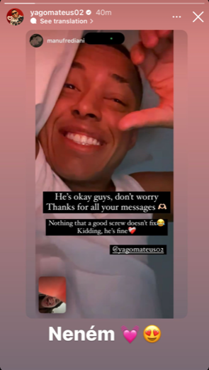 Košarkaš Crvene zvezde Jago dos Santos javio se iz bolnice i dobro je. On je na Instagramu podelio objavu svoje devojka sa video poziva.