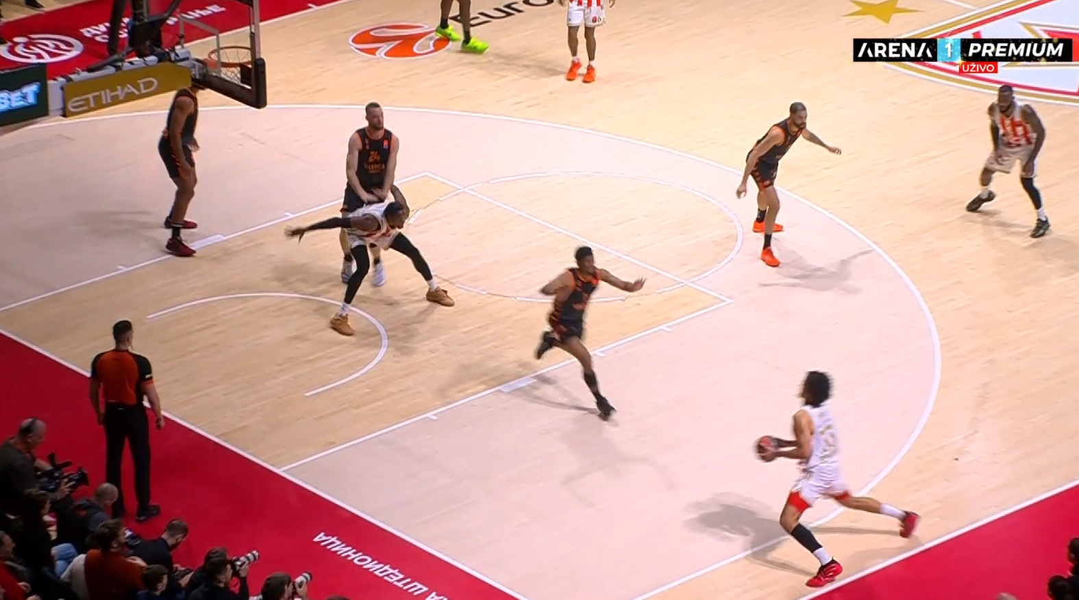 Ali činjenica je i da sudije nisu bile na svom nivou. Trio Mehdi Difala, Pjotr Pastusjak i Eduard Uđanski nervirali su i igrače i navijače Crvene zvezde. Momenat o kom će se pričati jeste na 2:19 u trećoj deonici pri rezultatu 64:68 u korist Valensije.