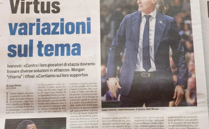 "Najbolji način da se na pravi način dočeka kraj sezone, ali i da se ostvare međuciljevi — poput rešavanja pitanja sa Milanom ove nedelje u smislu plasmana u prvenstvu — jeste fokusiranje na tekuće obaveze. Virtus, zapravo, želi da do kraja ispoštuje ovu Evroligu, u kojoj je ekipa reagovala nakon serije loših rezultata i povratila samopouzdanje pobedama i dobrim partijama. Ostaje žal što bi samo malo više bilo dovoljno da se i dalje ostane u trci za plej-in. Pobeda nad Partizanom je, dakle, pitanje prestiža, ali i psihološkog aspekta tima koji sada cilja na ponavljanje prošlogodišnjeg uspeha u Italiji. Da bi to ostvarili, moraće da uđu u završnicu sa motorom u punoj brzini".