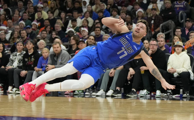 U tek završenom meču Dalas je odneo pobedu iz pustinje. Gostili su se Mavsi u Arizoni, strašna partija Luke Dončića. Slovena je ubacio 50 poena, dodao 14 asistencija, dodao je i šest skokova, 4 ukradene lopte i 3 blokade. Zaista nestvaran učinak. Luka je inače četvrti čovek u istoriji lige koji je ubacio 50 poena za Božić. Poslednji je to uradio Bernard King pre 40 godina, pre njega Vilt 1969. i Rik Bari tri Božića pre toga. Dodajmo da je Slovenac prešao granicu od