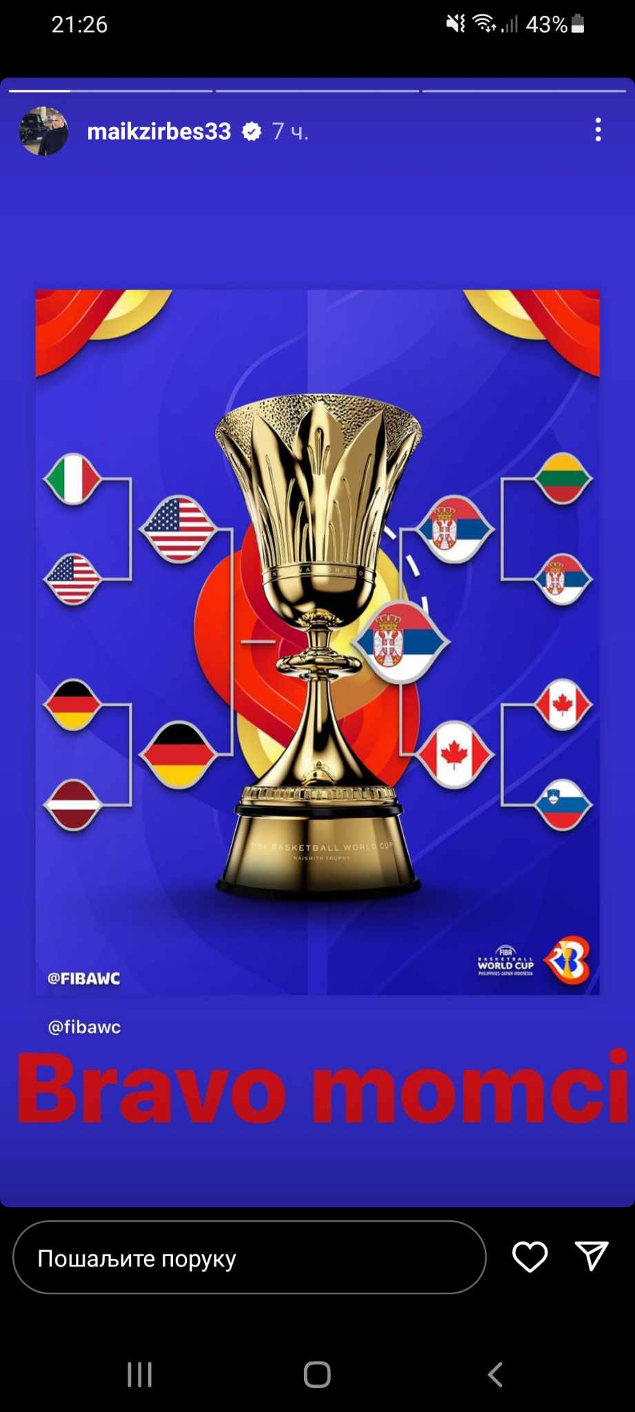 Bio je Cirbes svojevremeno i reprezentativac Nemačke, a danas je zbog plasmana Srbije i njegove zemlje u finale Mundobasketa "morao" dva puta da se oglasi na svom Instagram nalogu, kako bi čestitao obema selekcijama.