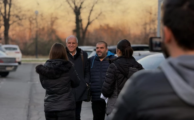 Pesmom su ih dočekali "grobari", koji su po dolasku u hotel zajedno sa igračima, koji su bili na balkonu hotela, pevali Partizanove pesme.