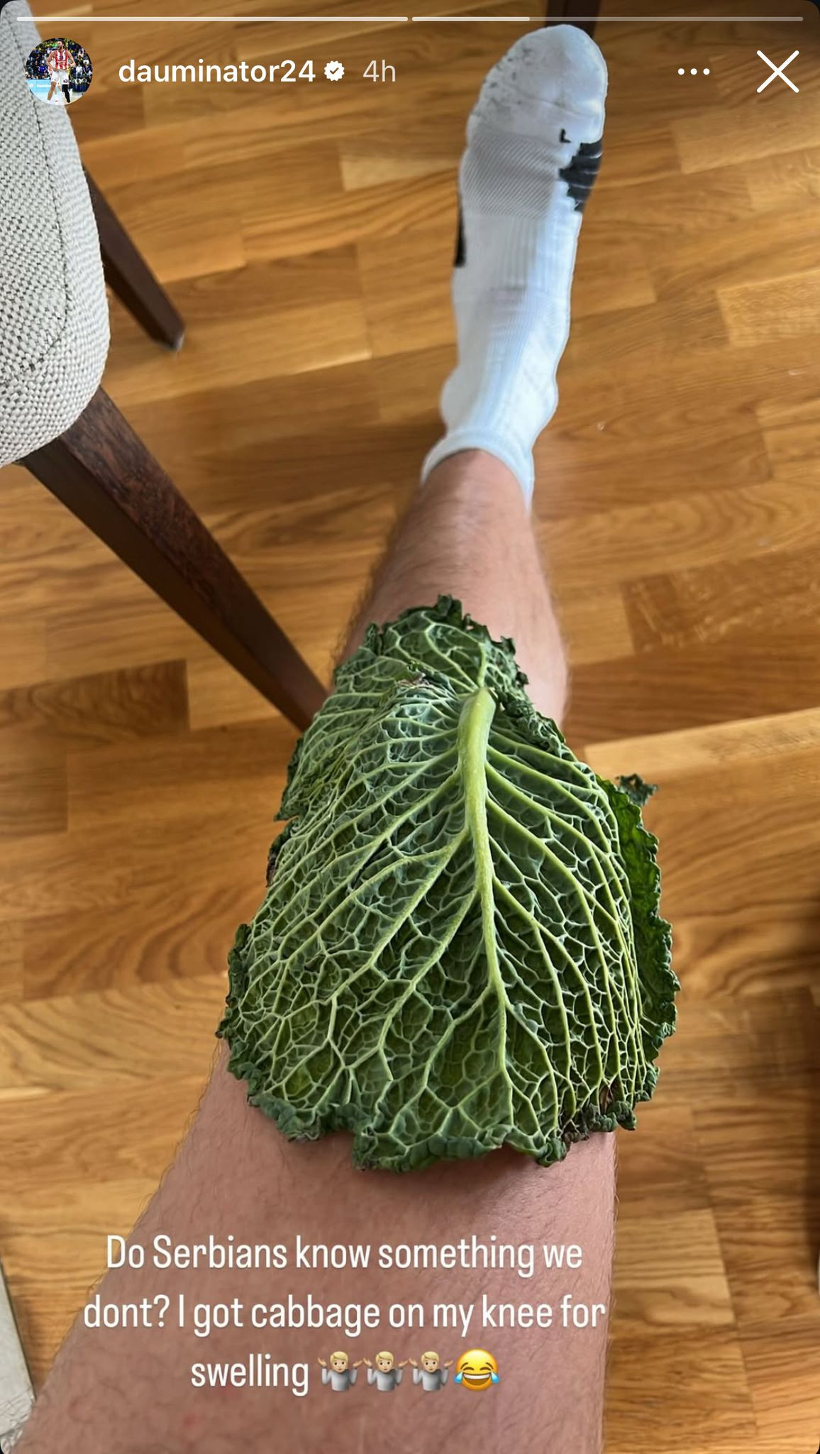 "Srbi znaju nešto što ja ne znam? Stavio sam kupus na koleno protiv otoka", napisao je Daum na društvenoj mreži Instagram.