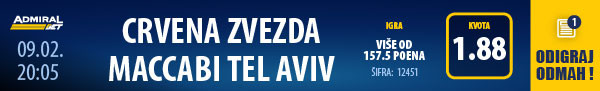Klub iz glavnog grada Izraela trenutno je osmi na tabeli Evrolige sa skorom 12-11, dok je Zvezda 13. i ima 10 pobeda i 13 poraza.