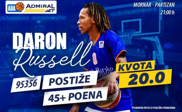 Može li Rasel da napuni koš Partizana? AdmiralBet nudi kvotu 20!