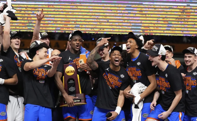 Slave Gatori, u trileru je Florida slavila protiv Hjustona sa 65:63 i stigla do svog trećeg šampionata, prvog posle 2007. godine kada su odbranili titulu. Hjuston je u svom prvom finalu posle Oladžuvona vodio sa +12 u drugom poluvremenu, ali je jednostavno Floridi bilo suđeno. To što su stigli ovu prednost je treći najveći povratak u istoriji NCAA finala. Na prvom mestu je naravno trijumf Kanzasa od pre tri godine kada je Severna Karolina vodila sa 16 razlike u meču za titulu. Može se reći da su Kuguari pobedili sami sebe, vodili su više od pola sata ukupno i izgubili. U poslednja dva minuta su napravili četiri od ukupno devet grešaka. U završnici je serijom 5:0 Florida stigla do pobede, a nisu dozvolili Hjustonu poslednji šut.