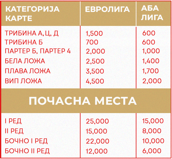 Šampion AdmiralBet ABA lige objavio je cene karata za ova dva duela i one se kreću od 700 do 25.000 dinara.