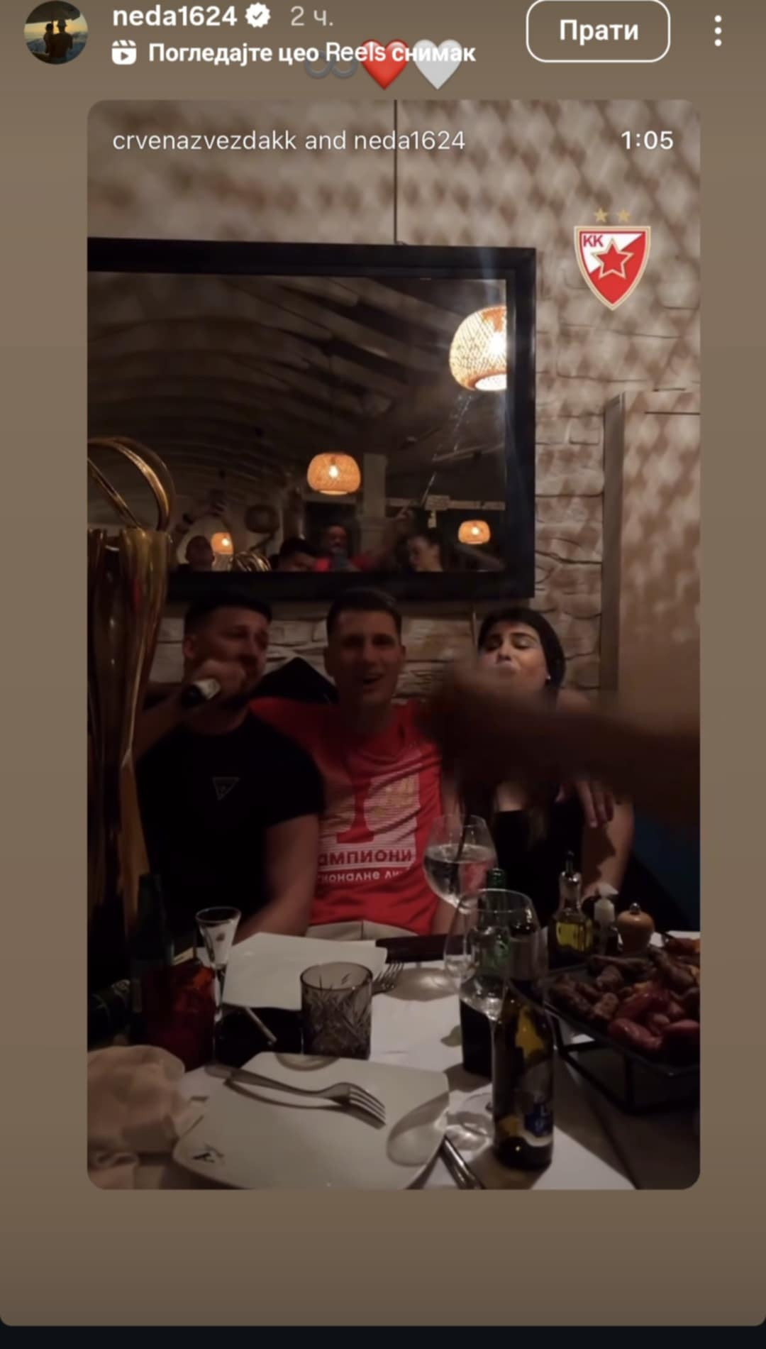 Nedović se oglasio na Instagramu uz čuvenu navijačku pesmu "Dušmani hoće da te unište" koju je peva na proslavi titule u društvu svoje lepše polovine.