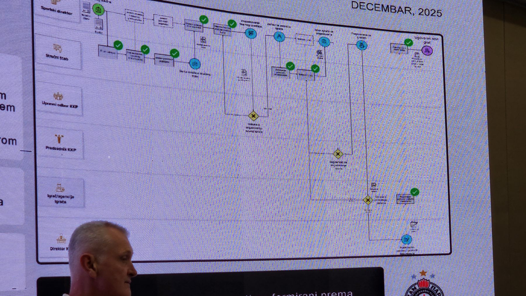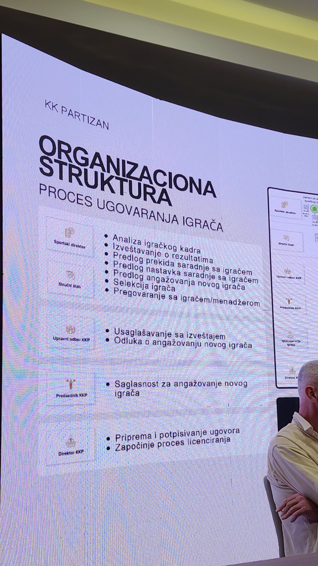Potom je predstavio tabelu načina funkcionisanja kluba gde je istakao da predsednik kluba i trener ne mogu biti i nisu bili na dve različite strane.