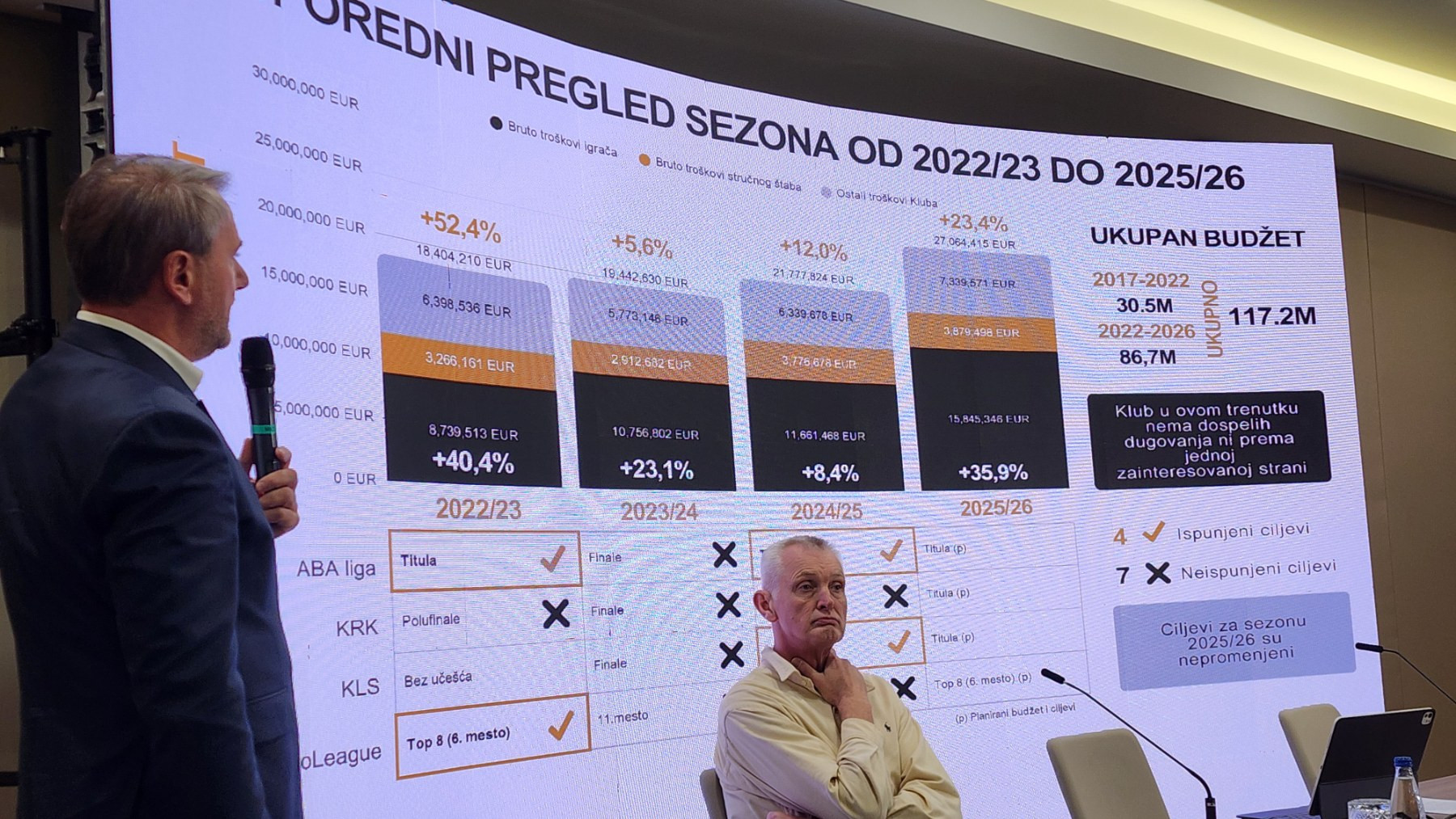 Nakon toga je predstavio uporedni finansijski pregled sezona od 2022/23 do 2025/26.
