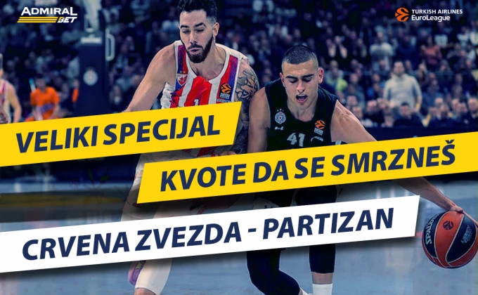 Današnji dan na sportske.net, ali i AdmiralBetu posvećen je evroligaškom derbiju, od 19 časova će Crvena zvezda dočekati Partizanu krcatom "Pioniru".