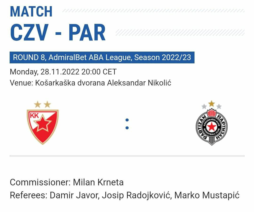 Crvena zvezda će biti u ulozi domaćina, a meč se igra u okviru osmog kola AdmiralBet ABA lige.