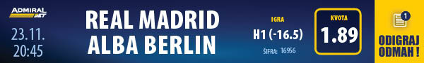 Real će večeras od 20.45h ponovo biti u ulozi domaćina i apsolutni favorit protiv poslednjeplasirane i objektivno najslabije ekipe u Evroligi, berlinske Albe. Tim iz Berlina smo u petak gledali protiv Partizana, pa iako su crno-beli daleko od prave forme, Alba je na kraju poražena sa petnaest poena razlike. Još lošiju partiju Alba je prikazala u nedelju u Bundesligi, kada je na svom terenu doživela debakl protiv Sintainiksa (75:108). Šta tek da očekujemo od njih protiv ''ranjenog'' Reala u Madridu...