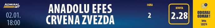 Košarkaši Crvene zvezde će drugog dana 2026. godine, dakle u petak, gostovati Efesu u sklopu 19. kola Evrolige.