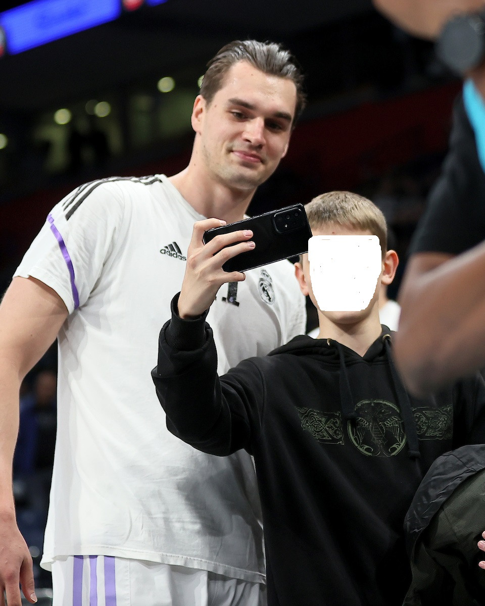 A tokom zagrevanja igrača dva tima, košarkaš Reala Mario Hezonja se fotografisao sa nekoliko prisutnih gledalaca i tako još jednom potvrdio da ima odličan odnos sa njima, iako će i večeras biti na suprotnoj strani.