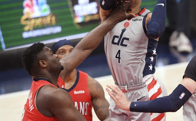 Furiozni finiš Rasela Vestbruka u produžetku presudio je Pelikansima. On je preuzeo stvar u svoje ruke, na kraju iznudio faul Zajona i realizovao slobodna bacanja za pobedu. Vestbruk je uz 36 poena, imao 15 skokova i 9 asistencija, on i Bil su iskombinovali 66 poena, pa Vašington posle očajnog starta pokušava da se uvuče u plej of. A tamo će zbog neverovatnog bekovskog tandema svi želeti da ih izbegnu na startu.