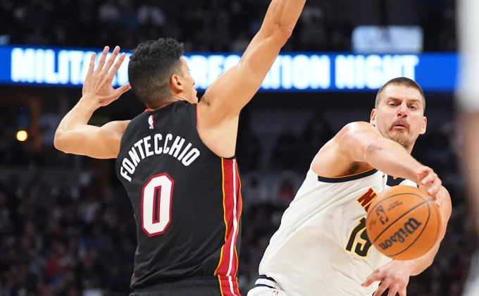 Srpski derbi je pripao Nikoli Jokiću, nova dominantna partija 33 poena, 16 asistencija i 15 skokova najboljeg igrača današnjice. Denver ume sa Majamijem, 11. pobeda u nizu u regularnoh sezoni protiv tima sa Floride. Jokić je šutirao 12 od 18. do tripl-dabla stigao na više od šest minuta do kraja treće četvrtine. Imali su Nagetsi komotnu prednost, onda se Majami spustio na osam poena minusa u poslednjem minutu. Sa dva bacanja je Marej potvrdio pobedu. Kod Denvera Gordon 24 poena, neporažen je njegov tim u Koloradu. Majami je deset godina bez pobede u ovoj državi u regularnom delu, slavili su 2023. u meču za prsten. Jović je ubacio pet poena, po tri skoka i asistencije, slab šut za nešto manje od 20 minuta igre. Pauel je bio najefikasniji kod Hita sa 23 poena, Vigins dodao 22, Hakez Džunior 21 poen. Adebajo se povredio u prvoj četvrtini, delom i zbog toga Majami je imao 23 skoka manje od rivala.