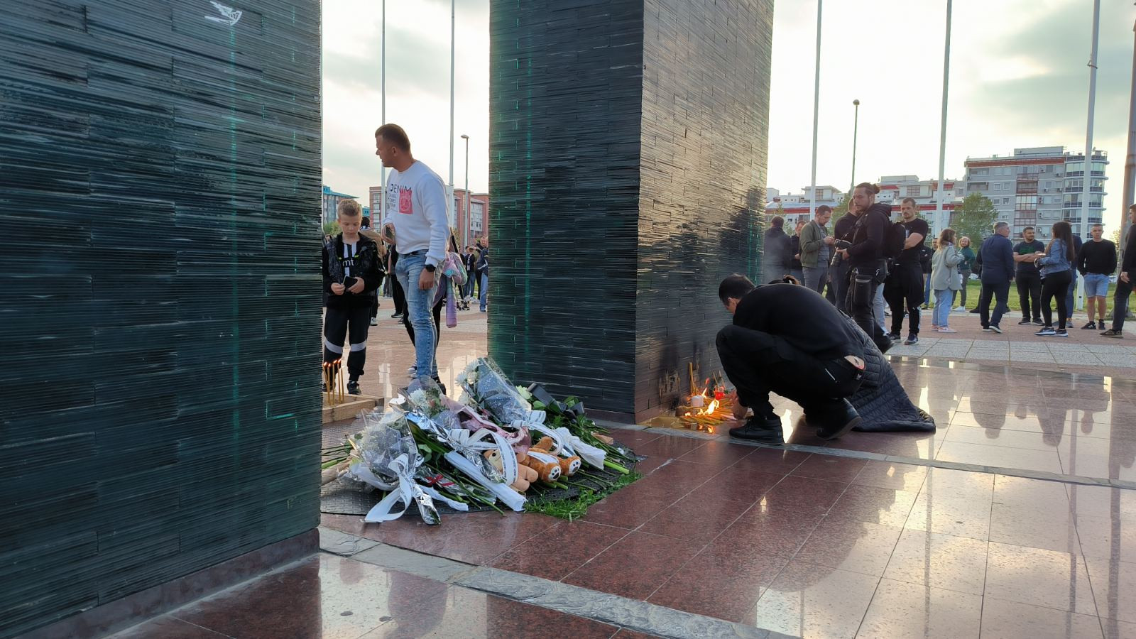 Kao što smo preneli nešto ranije, atmosfera ispred "Štark arene" je potpuno suprotna uobičajenoj. Navijači se okupljaju kod lopte sa severne strane "Arene" ostavljajući plišane igračke, cveće i sveće u znak saosećanja sa porodicama i prijateljima nastradalih učenika i učenica u Osnovnoj školi "Vladislav Ribnikar".