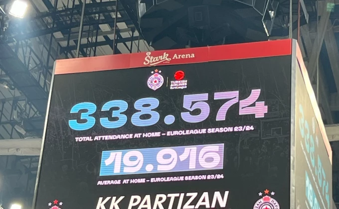 Konkretno, večeras ih je 19.916 uprkos tome što je Partizan jučerašnjim rezultatom u Istanbulu i pobedom Efesa nad Crvenom zvezdom eliminisan iz Evrolige.