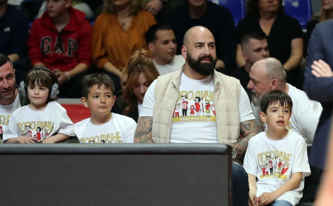 Antić je sa svojom decom i porodicom došao na utakmicu, a svi su došli u majicama s natpisom "Porodične vrednosti".
