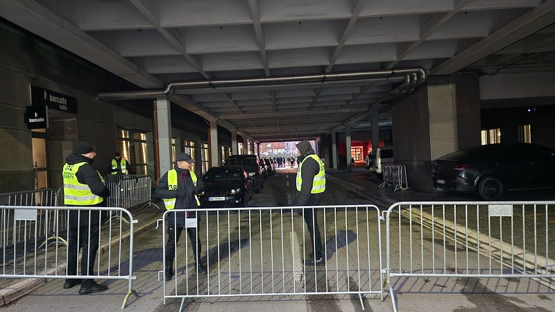 U blizini je i policijska patrola, a postavljene su i ograde kako niko osim igrača i trenera ne bi imao pristup dvorani.