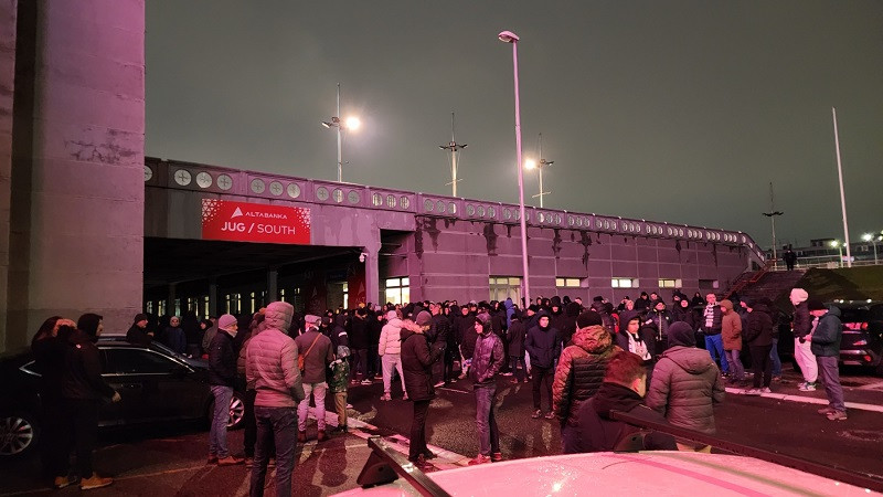 Navijači se polako okupljaju i tek se očekuje njihov veći broj.