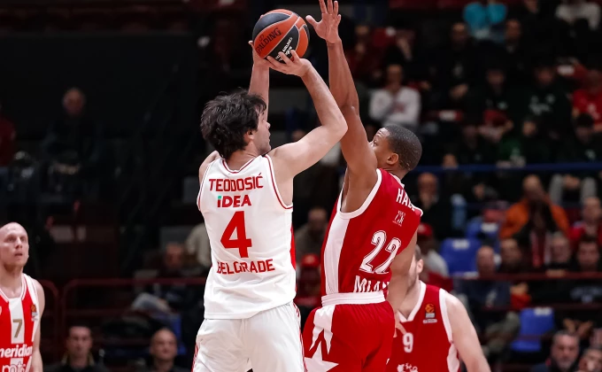 Košarkaši Crvene zvezde savladali su Armani iz Milana u "Mediolanum forumu" sa 62:76 u okviru 21. kola Evrolige.