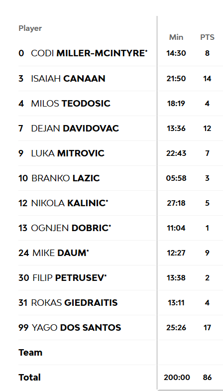 Možda bi se reklo da je minutaža uravnotežena, ali za utakmice poput jučerašnje, nesvakidašnje je da 11 od 12 igrača ima preko 10 minuta na parketu. To odaje utisak izostanka pravog rešenja i vere da jedna petorka može da donese povratak u meč. Upravo nešto o čemu je svojevremeno govorio Duško Ivanović.