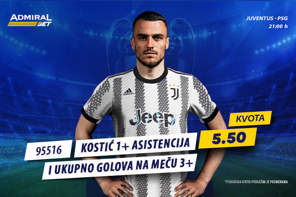AdmiralBet pita, hoće li Mbape i Mesi dotući Juve i može li Kostić da odgovori!