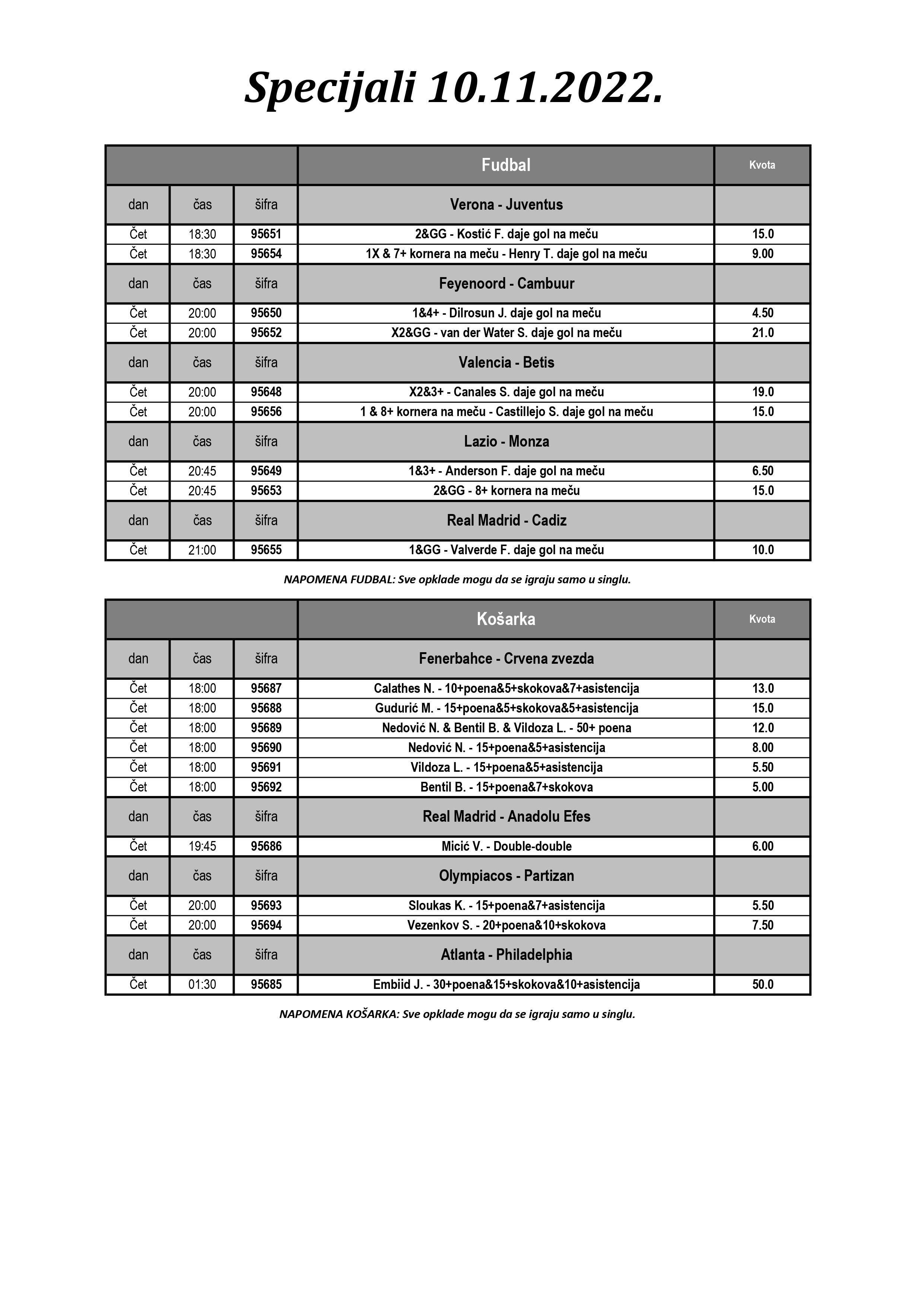 Proverite i opklade na meč u Pireju gde oslabljeni Partizan gostuje Olimpijakosu, a iz NBA ponude izdvajamo AdmiralBet tripl-dabl na Embida na kvotu 50!!!