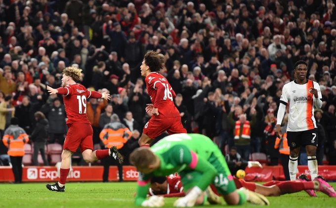 Elem, nije krenulo dobro na "Enfildu" pošto je Kvivin Keleher na golu Liverpula pogrešio, a Ogbene se našao na drugoj stativi i postigao 0:1. Držao je Luton taj rezultat uprkos brojnim šansama koje je propuštao, pre svih, Luis Dijaz, sve do 56. minuta, a onda je Virdžil van Dajk posle kornera zakucao loptu u mrežu rivala, a ubrzo je slično učinio i njegov zemljak Kodi Gakpo.