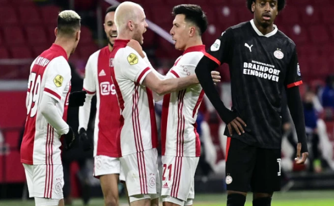 Fudbaleri Ajaksa plasirali su se u polufinale Kupa Holandije pošto su u derbiju protiv PSV Ajndhovena na domaćem terenu slavili sa 2:1 zahvaljujući novajliji Sebastjanu Aleu.
