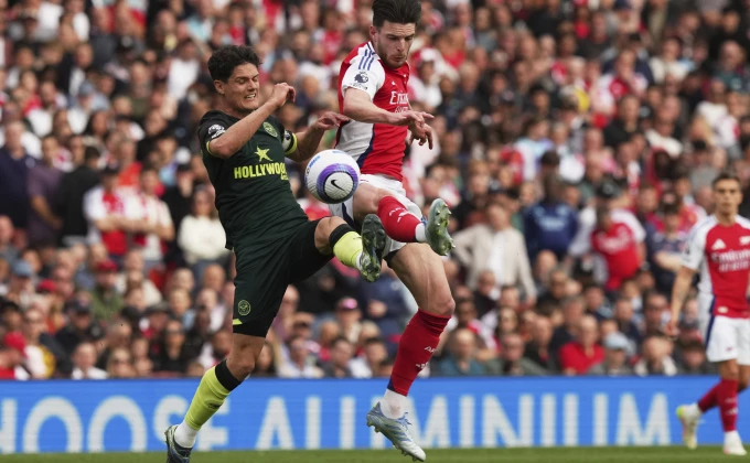 Golman Raja je uhvatio loptu u ruke posle kornera gostiju, proigrao je brzo Deklana Rajsa, a sjajni engleski vezista se "kao metak" stuštio ka golu Brentforda na nepostavljenu odbranu. Vukao je Rajs loptu do 18 metara od gola, a onda odigrao desno za Tomasa Partija, koji je udarcem iz prve pogodio pod samu prečku, za 1:0.