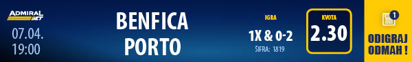 Okršaj Benfike i Porta, dve najbolje portugalske ekipe, večeras od 19.00 u ovom trenutku ne garantuje možda mnogo pogodaka, na prethodna dva meča oba su tima kao gosti slavili minimalnim rezultatom, pa treba biti oprezan kada uzimate u obrzi golove na utakmici. Porto je na poslednjem gostovanju remizirao sa Bragom, protiv velikog rivala iz Lisabona ih čeka još teži posao, a “orlovi” bi u slučaju da izbegnu poraz vrlo verovatno postali šampioni zemlje.