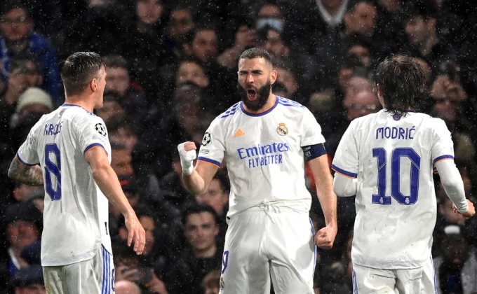 Fudbaleri Real Madrida praktično su jednom nogom u polufinalu Lige šampiona pošto su u prvom meču četvrtfinala slavili protiv Čelsija u Londonu 3:1 zahvaljujući golovima trostrukog strelca Karima Benzeme.