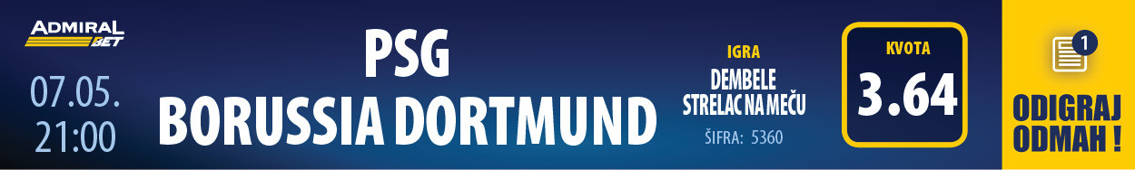 Sve u svemu, Dortmund je u prvom meču slavio 1:0, i sada mora da "preživi" i "Park prinčeva" i Dembelea i Embapea, ako želi do velikog finala Lige šampiona.