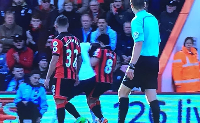 Pred kraj susreta se uvukla nervoza u redove gostiju, te je neoprezno reagovao bivši vezista Njukasla Musa Sisoko. On je u jednoj borbi za loptu, koja je bila van granica terena, laktom udario vezistu Bornmauta Artera, ali je prošao nekažnjeno.