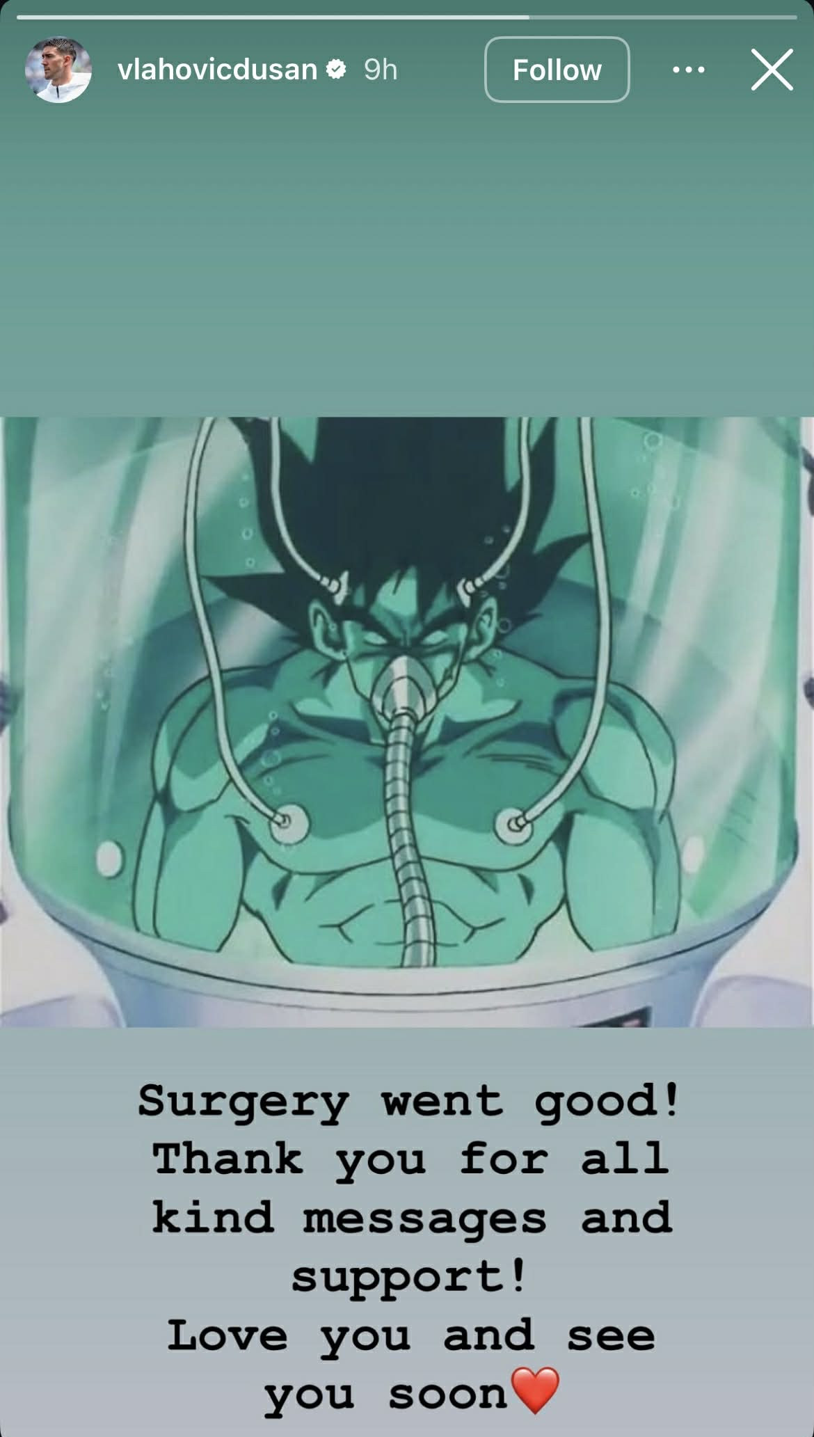 "Operacija je prošla uspešno! Hvala svima na brižnim porukama i podršci. Volim vas i vidimo se uskoro", napisao je Vlahović.