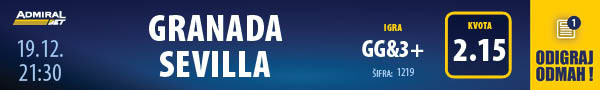 Sredinom nedelje pod Alhambru stiže Sevilja, ali iako gradove deli nekih 250 kilometara, to nije rivalstvo, najveći protivnik Granade je Malaga. Sevilja je veći klub, ali loše su se provodili na ovom gostovanju čak i kada su bili jači nego sada. Ne mislimo toliko na period u prošloj deceniji kada su "Nasridi" bili početnici u Primeri, već na nešto bliskiju prošlost. Naime, u poslednjih šest gostovanja su Berberi dobili samo jednom na "Karmenesu", a četiri meča su bila pobede domaćih. Poslednje dve godine pre ispadanja iz lige, Granada je dobijala sa 1:0. Pošto su uz Almeriju primili najviše golova u Ligi, a i Seviljina odbrana sa Ramosom nije nešto, možda su sada golovi najbolja opcija.