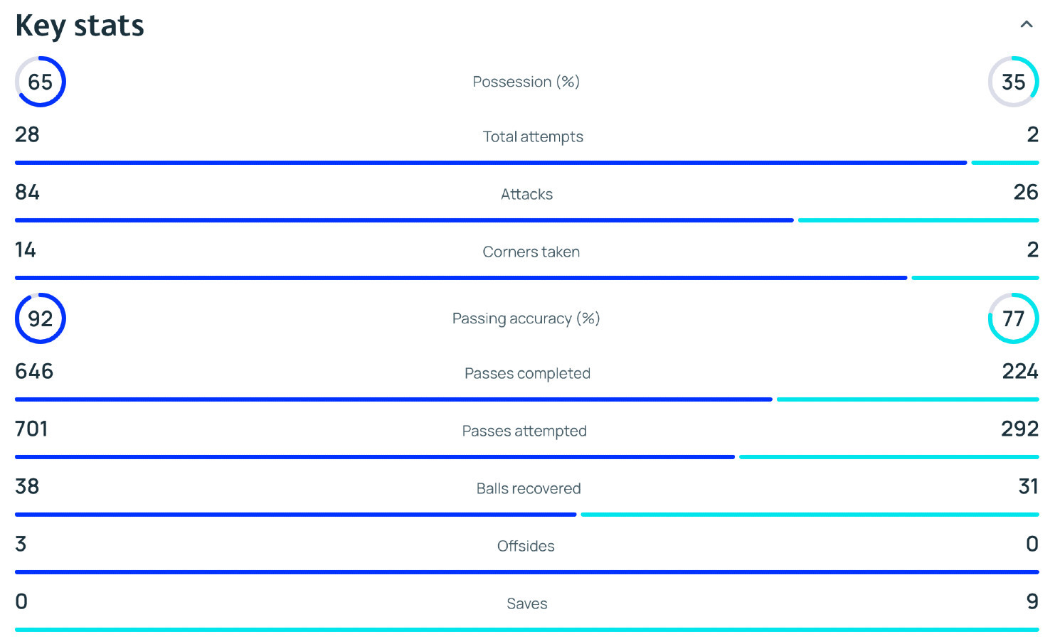 Posed lopte bio je i golim okom vidljivo na strani Parižana u odnosu 65-35, a zanimljiva je i statistika u odnosu izvedenih kornera - 14:2.