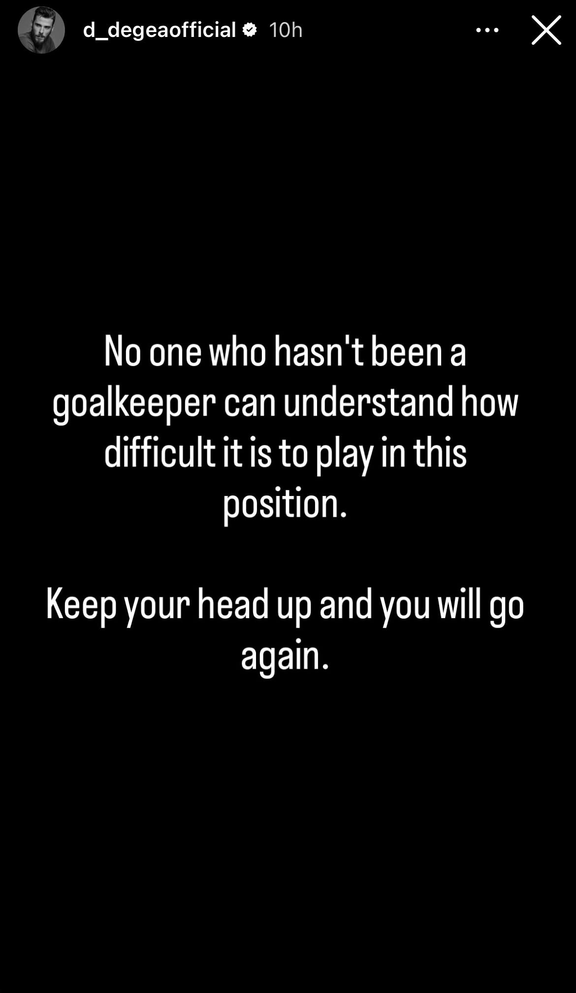 "Ko nije bio golman ne može da razume koliko je teško igrati na toj poziciji. Glavu gore, pokušaćeš ponovo", napisao je De Hea poruku podrške 22-godišnjem.