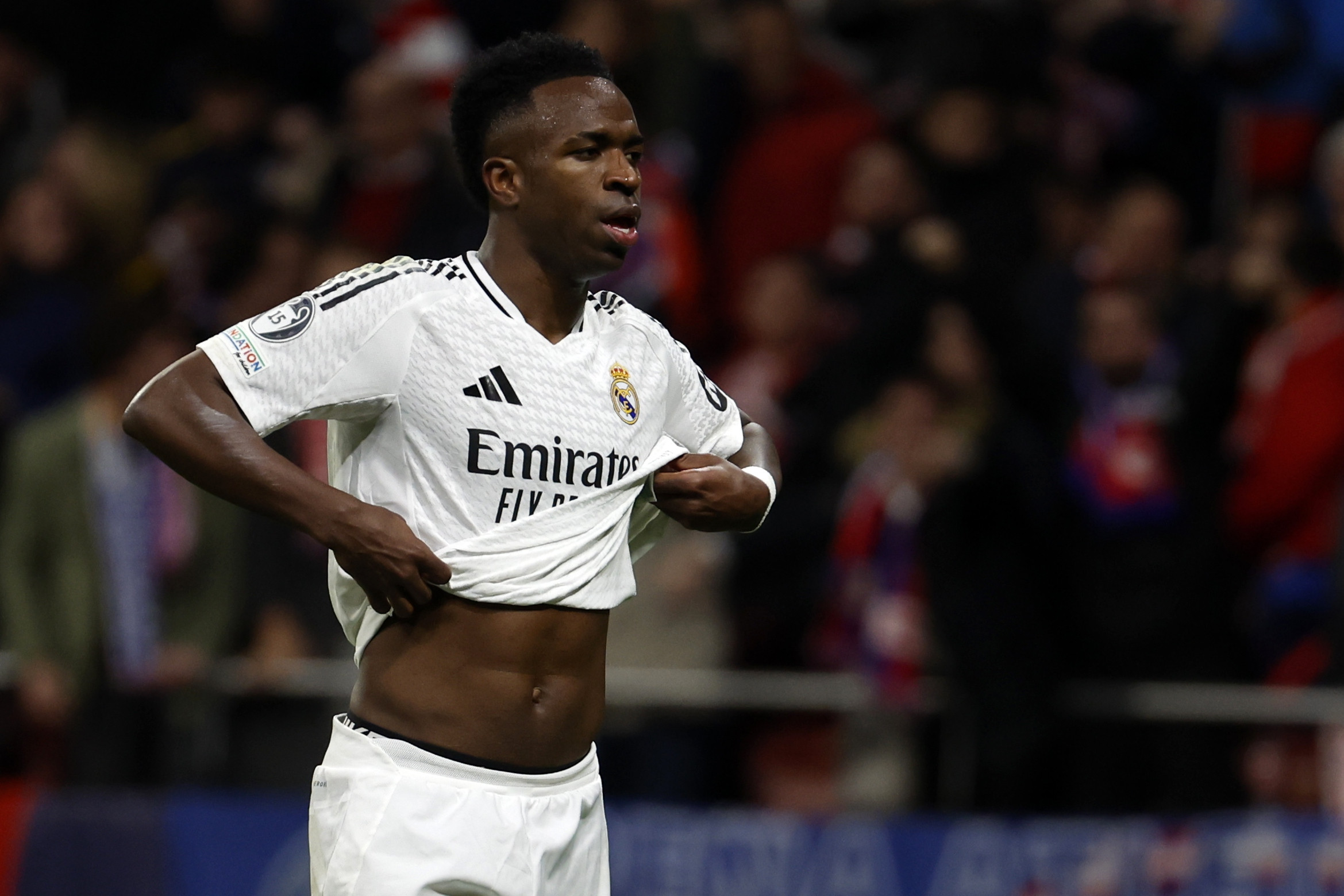 Odbrana Atletika je bila čvrsta poput stene do 68. minuta, a onda kada su bili pred golom Tiba Kurtoe, usledila je precizna i brza kontra Reala koja je otvorila dosta prostora Kilijanu Embapeu posle pasa Fedea Valverdea. Francuzova brzina stvorila je prednost koju je Klemon Lengle zaustavio povlačenjem u kaznenom prostoru. Ovog puta Marčinjak nije imao nikakvu sumnju. Odgovornost je pripala Vinisijusu, a Brazilac šalje loptu pod svodove ''Metropolitana''.