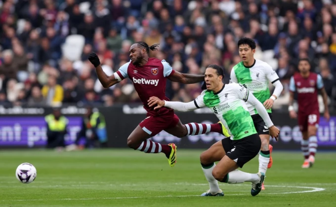 Sve vreme je "mirisalo" da bi domaćin mogao da opasno zapreti poljuljanoj odbrani Liverpula i to se desilo u 43. minutu, kada je Vest Hem poveo i to samo nekoliko sekundi posle velike šanse za Vest Hem. Tada su Van Dajk i golman Alison sprečili Bovena da postigne gol.