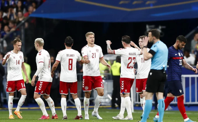 Fudbaleri reprezentacije Francuske izgubili su od Danske u Sen Deniju sa 1:2 (0:0) u utakmici 1. kola Lige "A" grupe "1" Lige nacija.