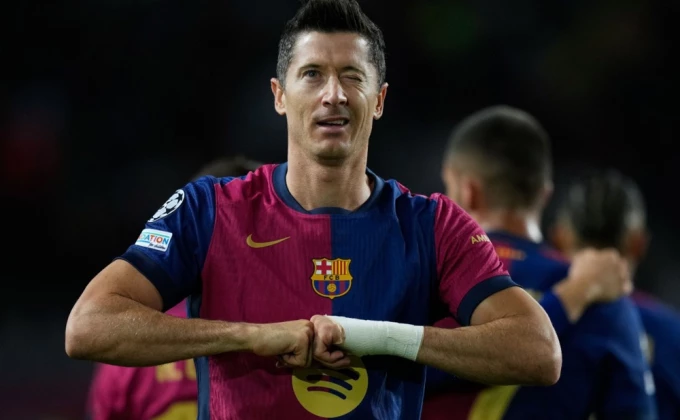 Gosti su odolevali nepunih osam minuta, a onda odlična akcija Barse, na kraju Rafinja sa desne strane ubacuje loptu u peterac za Levandovskog koji ju je sproveo u mrežu - 1:0.