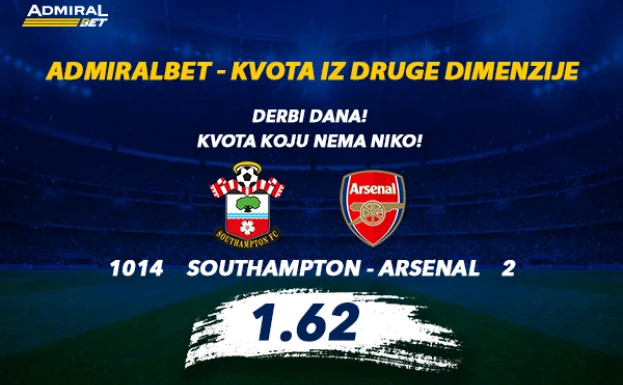 Pošto će dvojka na "Gunere" biti najigraniji par dana, AdmiralBet ponovo nudi kvotu iz druge dimenzije, najveću u svakom trenutku. Princip je isti, kao i juče sa trijumfom Čelsija, trenutna kvota je 1.62 a u svakom trenutku će biti najveća na AdmiralBetu, kako se bude menjala do 15 časova.