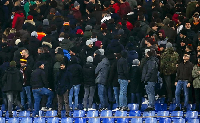 Noćas je policija blokirala deo grada i ulice kojim se autobus vraćap sa aerodroma, pedesetak navijača je zasulo autobus raznim predmetima, dvojica su uhapšena.