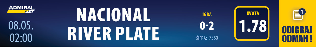 Sada nema Boke, tu je River Plata, Nasional kako rekosmo trenira Rekoba, prošle sezone se vratio Suarez, ali je brzo otišao. Tim je iskusan sa strancima Mehiom, reprezentativnim golmanom Panem, Velaskezom koji je igrao za Bragu i Rajo i nikada nije dobio šansu kod Ćola Simeonea u Atletiku. Tu su još napadač Betankur koji je svojevremeno obećavao u Atalanti, pa iskusni Paragvajac Santander koga se sećate iz Bolonje. Nije loš tim, trebalo bi da prođu dalje, uz River, ispred Libertada i Deportivo Tahire iz Venecuele. Izgubili su na "Monumentalu", poslednji put "Milionere" su dobili u Kopa Libertadores 2009. godine. Ne bi trebalo da bude mnogo golova.